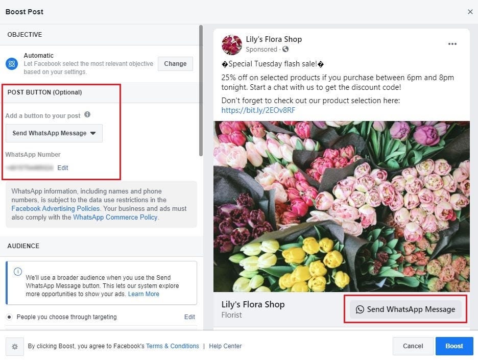 We'll take a look at how you can do both by adding a WhatsApp button to your Facebook posts and ads.