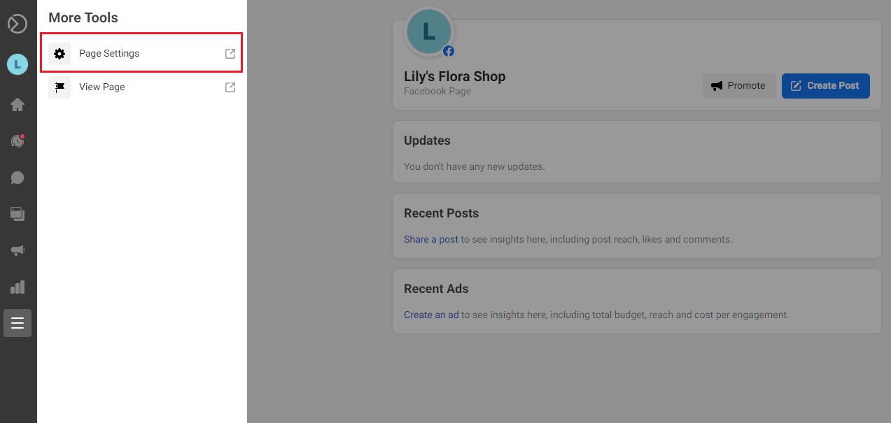 Step 2: On the left side column, click on More Tools → Page Settings.